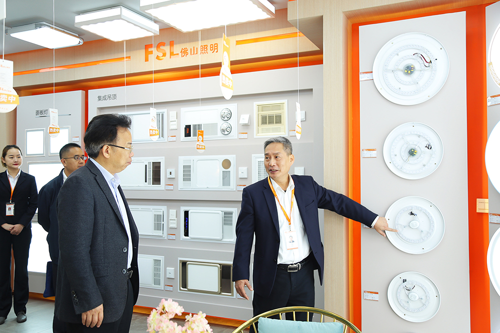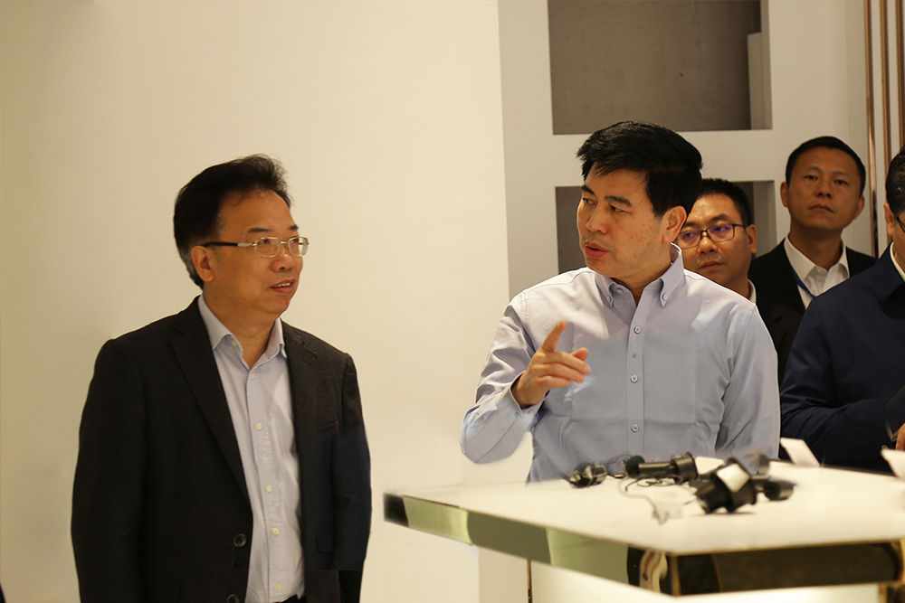 陈胜光总经理一行首先参观了尊龙凯时专卖店形象店、智·照体验空间,体验了尊龙凯时在终端门店的全新升级及多情景应用的智能系统解决方案,进一步了解了企业在智能板块的建设和运行情况。