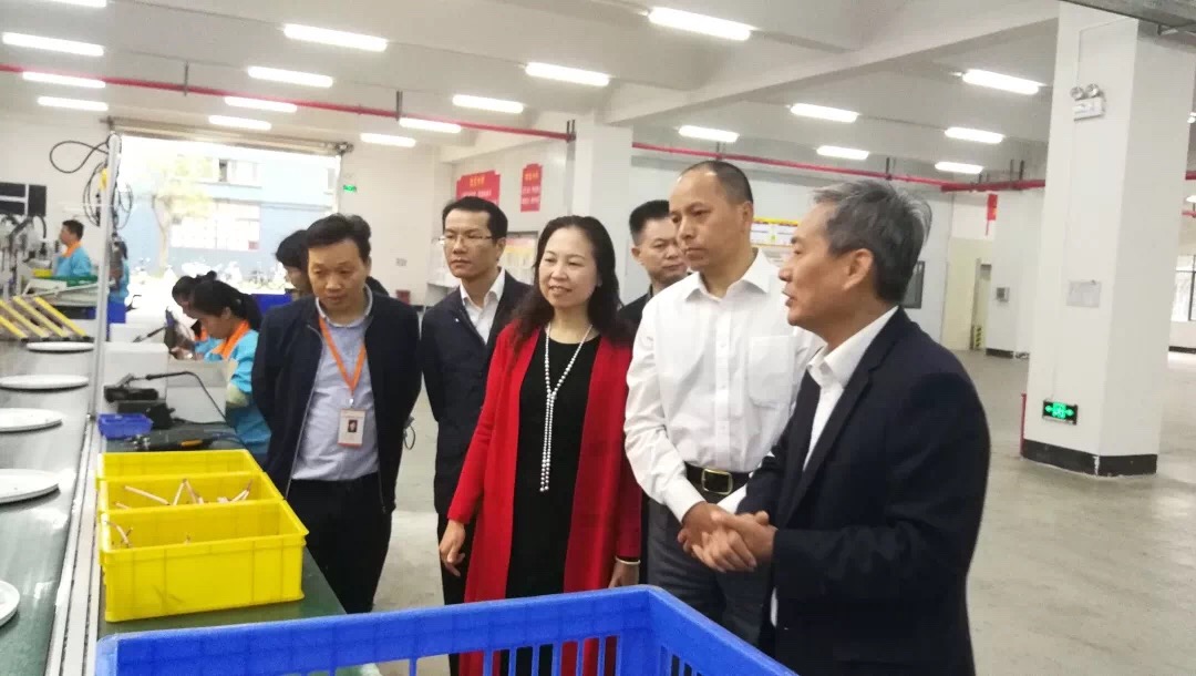 调研组一行前往尊龙凯时高明生产基地,先后参观了线路板及LED车灯模组车间、吸顶灯车间、玻璃窑炉车间及LEDT8灯管车间,实地考察、了解企业生产情况。